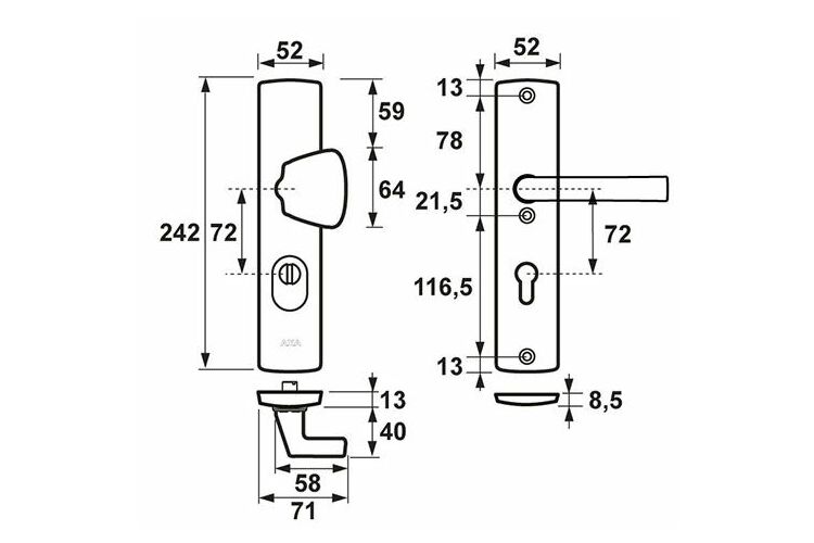 Axa knopgarnituur met kerntrekbeveiliging PC72  SKG3 aluminium F1