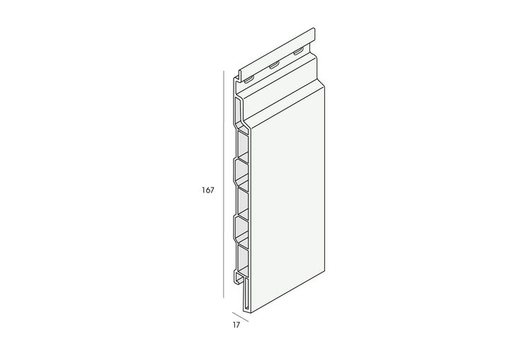 Het Keralit Sponningdeel 167 mm is een onderhoudsarme kunststof gevelbekleding met een werkende breedte van 167 mm. Het paneel is vervaardigd uit Fiberyl®, een composietmateriaal dat minimale uitzetting en krimp vertoont. Door de diepe profilering ontstaat een strak en verfijnd gevelbeeld dat past bij uiteenlopende bouwstijlen. Het product is geschikt voor montage in zowel horizontale als verticale richting en is bestand tegen verwering, UV-straling en vocht. Dankzij de duurzame samenstelling blijft het oppervlak langdurig mooi zonder schilderwerk.
