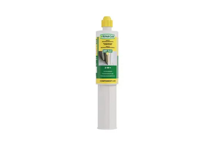 Repair Care Dry Flex IN Reparatiepasta 2-in-1 Componenten Koker 150ml is een veelzijdige reparatiepasta die ideaal is voor het herstellen van houtrot en andere beschadigingen, met een snelle uitharding en uitstekende hechting voor een langdurig resultaat.