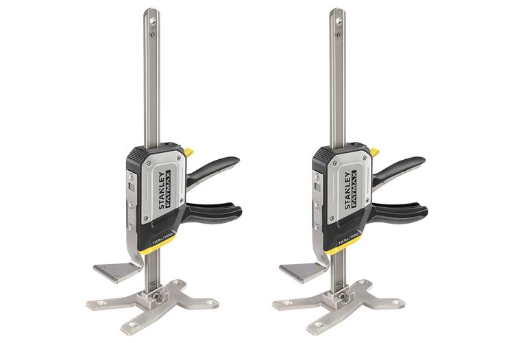 De Stanley FATMAX TradeLift (duopack) is een krachtig montage-hulpmiddel waarmee je zware delen (tot 150 kg) alleen kunt tillen, spreiden, nivelleren én fixeren. De duwhendel kan je met hand of voet bedienen, zodat je druk uitoefent zonder al je kracht in je armen te moeten steken. De ijzeren basisplaat is stabiel en beschikt over vier verzonken bevestigingspunten voor verankering. Dankzij de fijnafstelling daalt de hefplaat nauwkeurig met stapjes van maximaal 2,5 mm, ideaal bij het nivelleren van zware objecten. De robuuste metalen behuizing beschermt de interne mechaniek, terwijl de ergonomische softgrip-handgreep zorgt voor comfort en controle. Met het TradeLift-paar werk je efficiënt aan montageprojecten – van kasten tot deuren – zonder extra hulp.